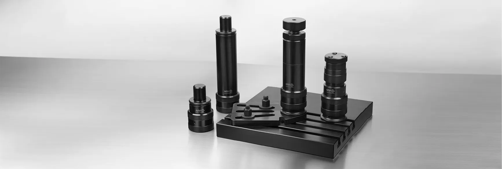 Mit einem Startset aus zehn Teilen deckt der Hersteller ein breites Anwendungsspektrum ab. Das beinhaltet ein Schraubbockelement mit Fußelement, ein kleines und ein mittleres Zwischenelement, drei Gewindeadapter M16, M20, M24, drei T-Nutensteine für Nute 18, 22, 28 sowie ein Montagewerkzeug. Durch weitere Zwischenelemente sind Höhen bis maximal 1620 Millimeter möglich. Die zulässige Stützkraft beträgt 60 kN. Ergänzend hierzu bietet AMF ein weiteres Abstützelement mit Feingewinde an. Dieses kann der Anwender bis zu einer Auflagenhöhe von maximal 330 mm feinfühlig unter Last einstellen. Optional aufsetzbare ballige, glatte oder punktuelle Auflagen gleichen Unebenheiten des Werkstücks aus. Sie werden magnetisch gehalten, über einen Zylinderstift gesichert und können mit einem Winkel von +/- 3° verstellt werden. Das Abstützelement ist in horizontaler und vertikaler Aufspannung einsetzbar.
